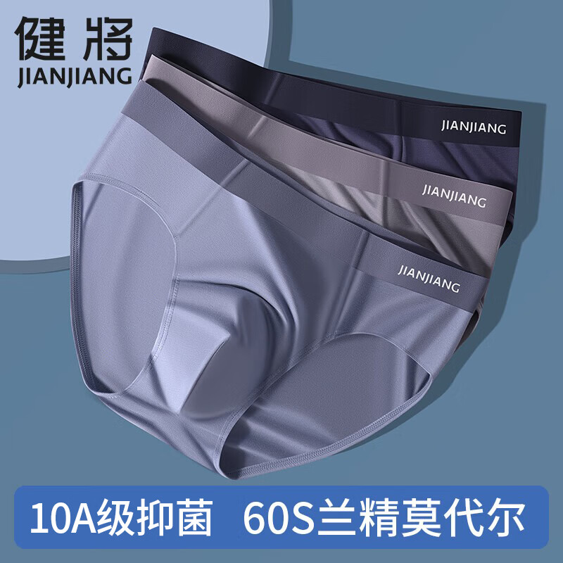 健将男士内裤男生莫代尔无痕抗菌透气宽松大码运动男生三角短裤衩头 午夜蓝+鸽灰+暗紫 A类莫代尔 3条 6XL 【推荐220-240斤】