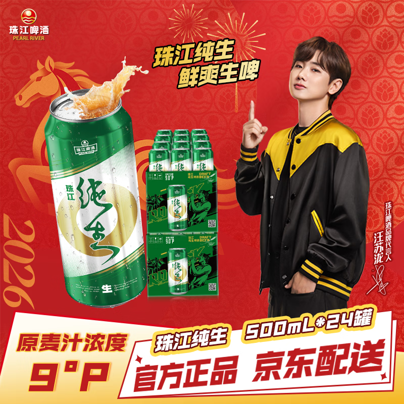 珠江啤酒(PEARL RIVER)9度 纯生啤酒 500ml*12听 2箱装 三八节送礼