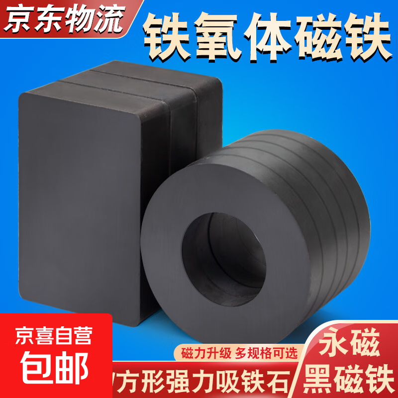 环形磁铁 方形铁氧体大号黑色强力吸铁石 带孔强磁 高强度普磁 磁石喇叭磁铁 圆环55*10 孔25mm(3个)