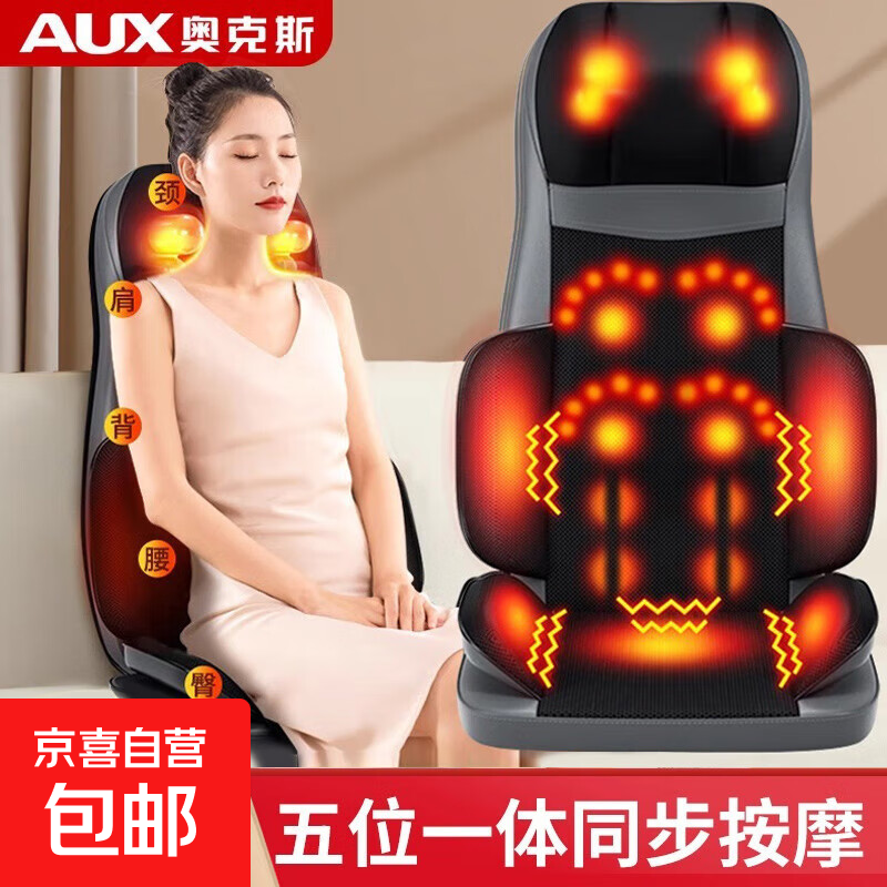 奥克斯(AUX)按摩靠垫按摩仪颈椎肩颈背腰部按摩器按摩垫全身躺垫一体多功能按摩椅垫七夕情人节礼物送男女友 标准款【8组按摩头+3档热敷+3大模式+3档力度】