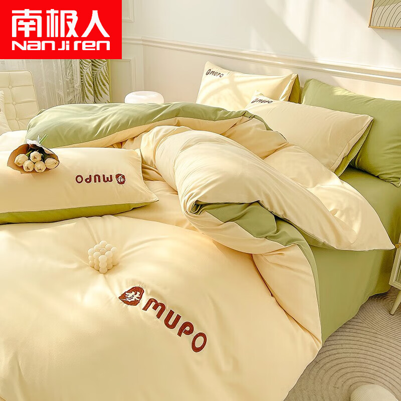 南极人(Nanjiren) 床上四件套+被子被芯+枕芯磨毛床单被套单双人宿舍被罩家用套件 梦-芝士绿 1.8米床四件套【被套1.8*2.2米】