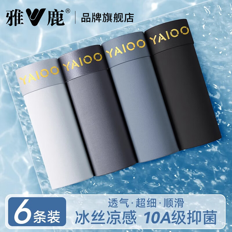 雅鹿6条装冰丝内裤男士四角裤头薄款透气男款大码无痕平角裤衩 默认4色+同款2条 袋装 6条 2XL (建议120-140斤)