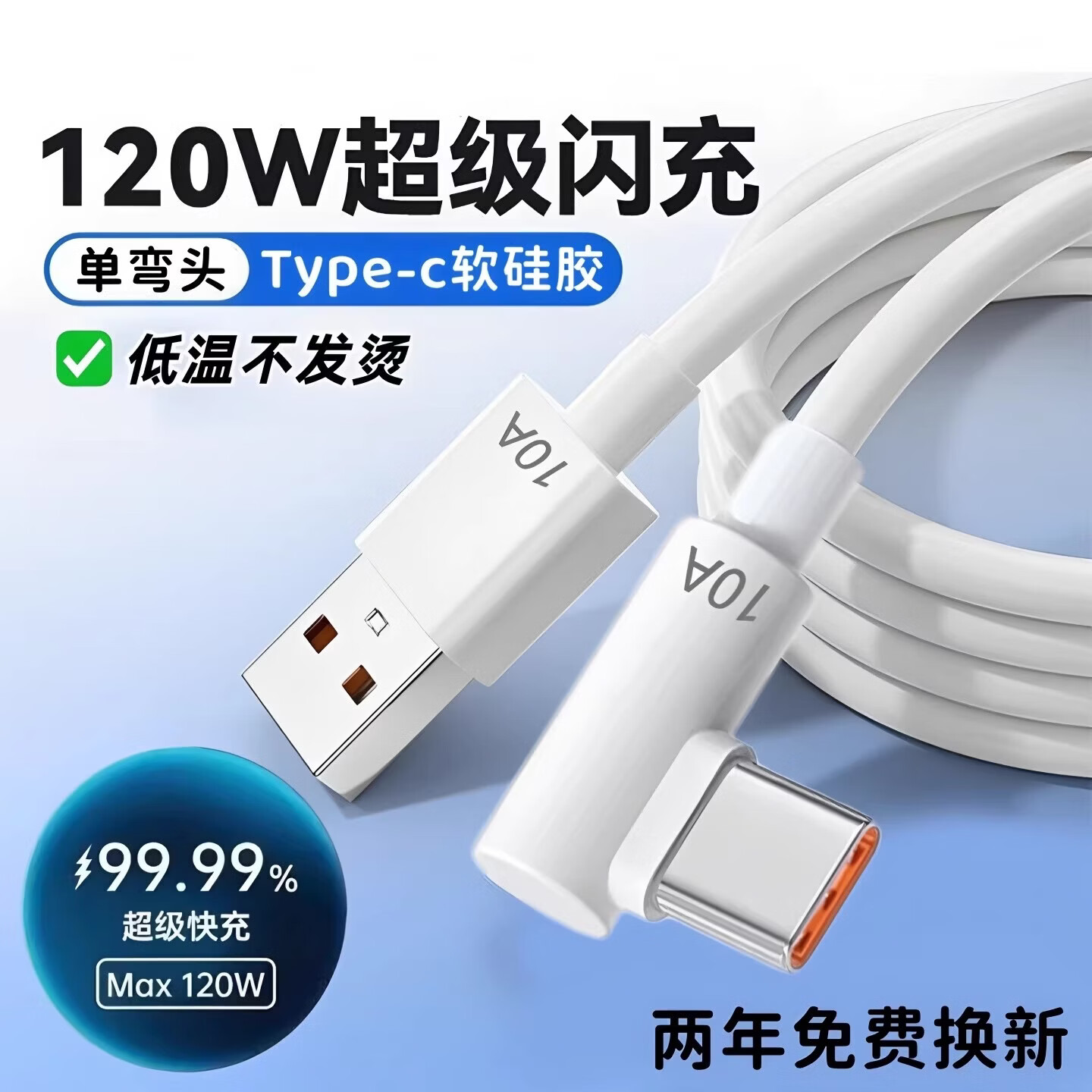 艾胜者120W超级快充Type-c编织数据线10A闪充手机加长充电线车载usb通用大电流带头适用华为荣耀vivo小米 【单条装】弯头120W手游快充线 2米
