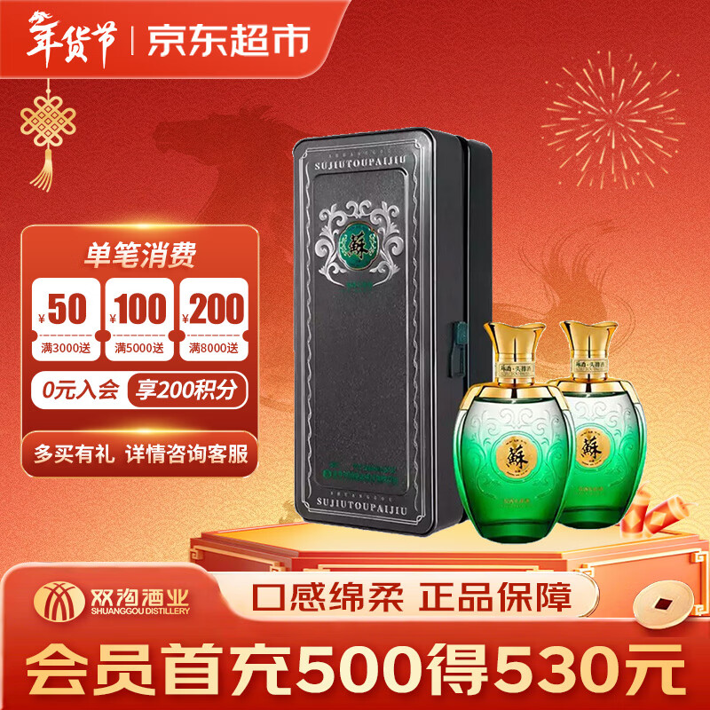 双沟 苏酒头排酒 浓香型白酒 52度 260ml*2瓶 礼盒装