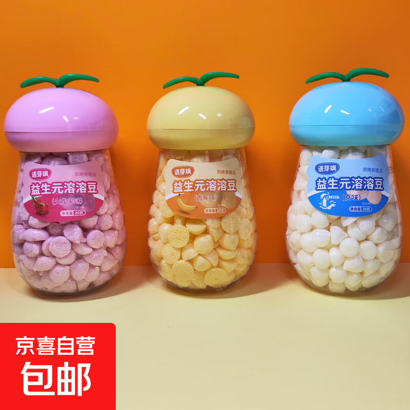 【京东物流】益生元溶豆奶豆易吞咽 宝宝儿童零辅食 【树叶溶豆3罐】原味+火龙果味+香蕉味