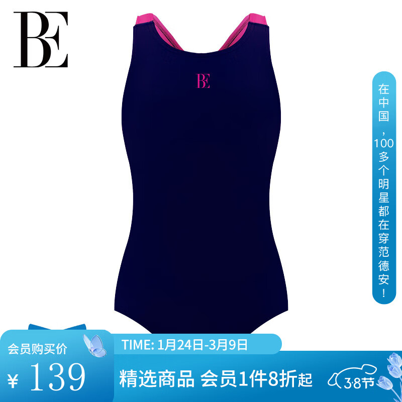 范德安(BALNEAIRE)MIX系列2025新品防晒亲肤竞速U领减阻女孩儿童泳衣 260313+260315 海军蓝 150