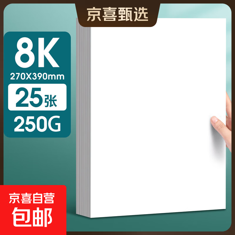 荷兰白卡纸4KA3A4白色硬厚卡纸美术学生马克笔绘画手抄报画纸卡纸8k开纸美术儿童画画手工卡纸文具 8K/25张【250克】