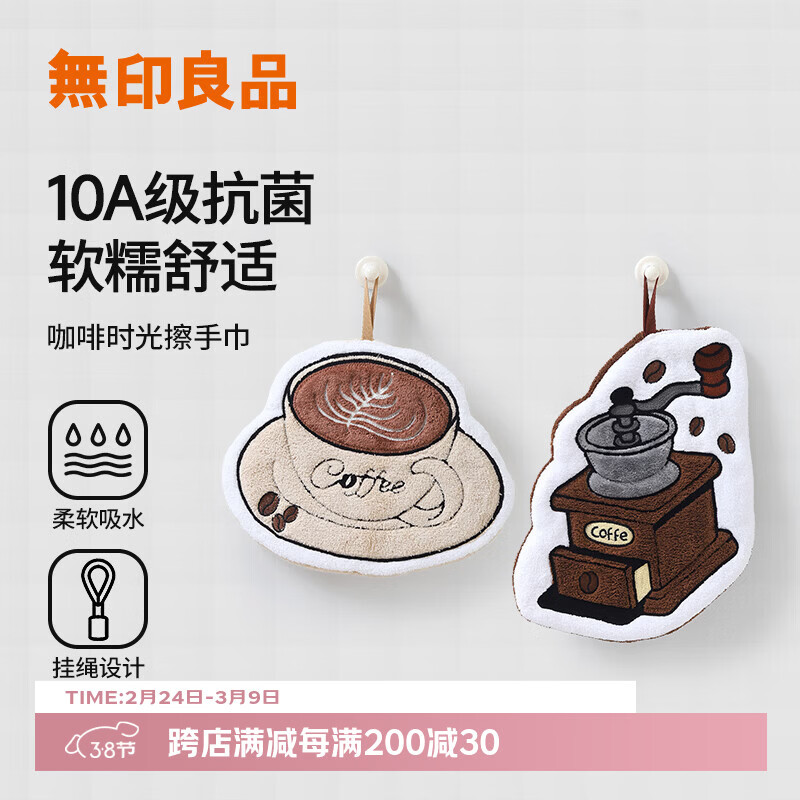 无印良品擦手毛巾2条10A级抗菌厨房卫生间超吸水可爱不易掉毛擦手巾咖啡款