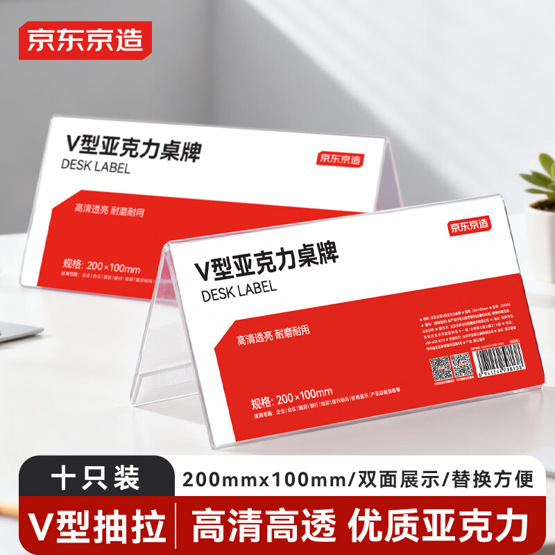 京东京造V型200*100mm亚克力桌牌价格展示牌立牌广告牌 会议姓名牌座位牌席位卡办公用品10个装赠打印模版