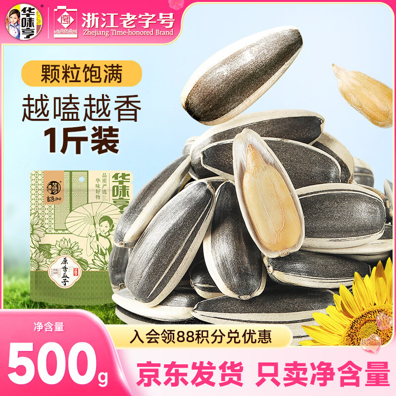 华味亨原味瓜子500g葵花籽坚果炒货香瓜子追剧小吃办公休闲零食1斤装