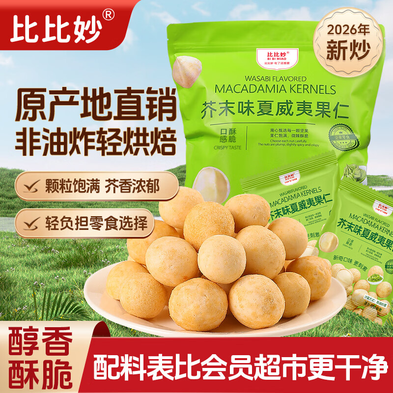 比比妙芥末味夏威夷果仁500g独立小包装会员同款网红办公室休闲