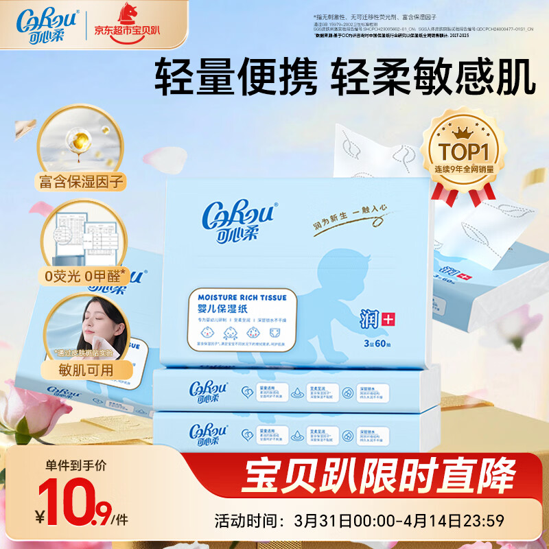 可心柔婴儿乳霜纸3层60抽5包婴儿纸柔润保湿抽纸