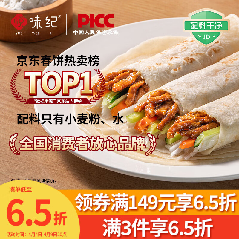悦味纪 原味烫面春饼1.05kg 30张 烧烤卷饼薄饼 手抓饼 早餐半成品速食