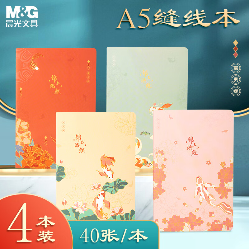 晨光(M&G)文具A5软抄本缝线本 40张高颜值错题本 高中学生考研记事日记本 锦上添鲤4本FA5102DA