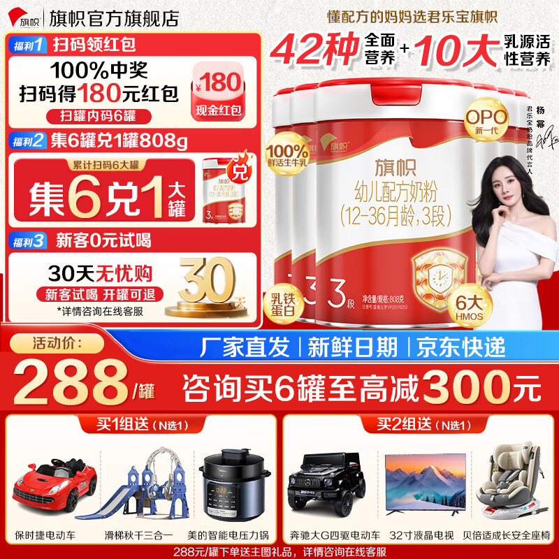 旗帜奶粉3段红钻新国标红罐 12-36个月幼儿含乳铁蛋白配方罐装808g 3段 808g 6罐 【到手7大罐】