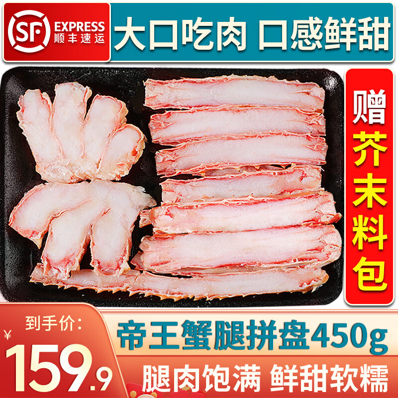 帝王蟹蟹腿 鲜活熟冻帝王蟹腿 蟹类生鲜大螃蟹腿 俄罗斯进口蟹腿 【无冰】帝王蟹腿拼盘450g*1盒(加大加粗MAX+)