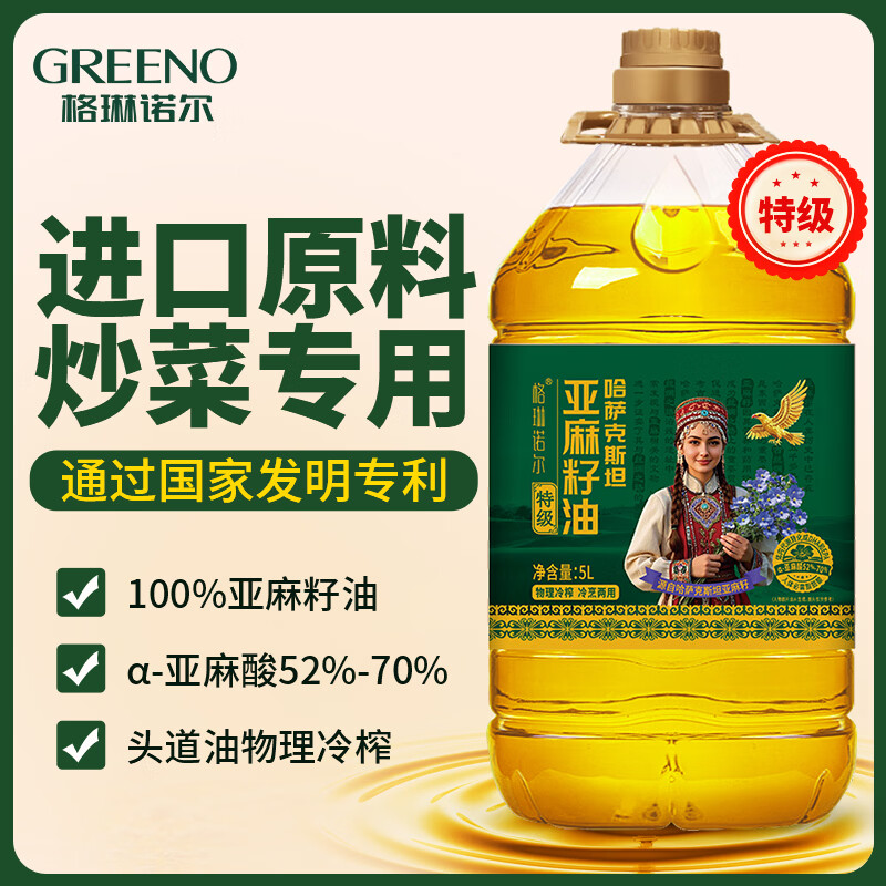 格琳诺尔冷榨特级【保真亚麻籽油】5L 炒菜用冷榨植物油 进口原料食用油
