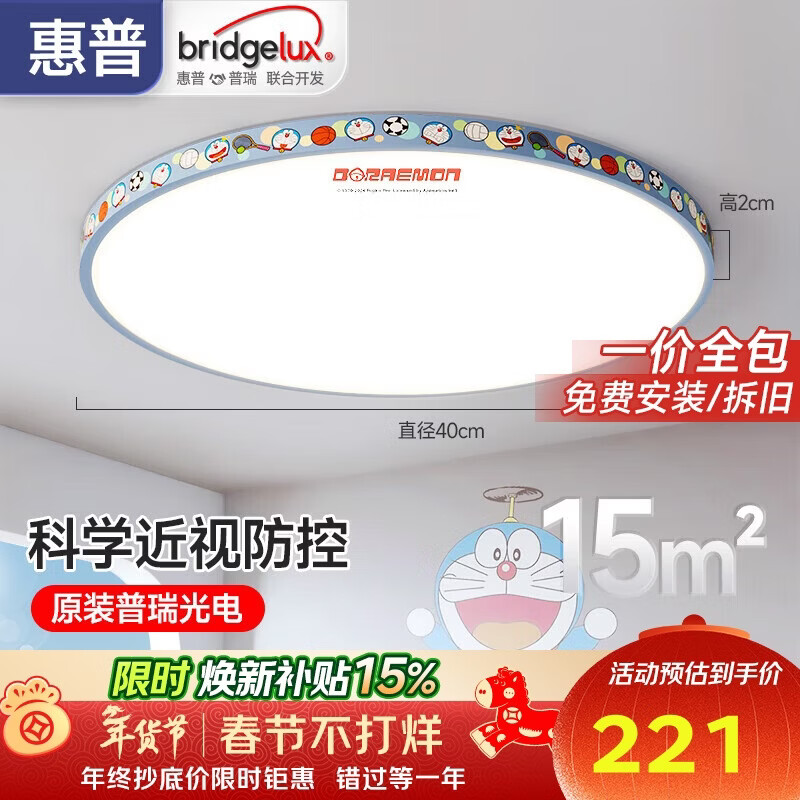 惠普普瑞护眼LED卧室儿童房吸顶灯卡通哆啦A梦中山灯具晨之光包安装