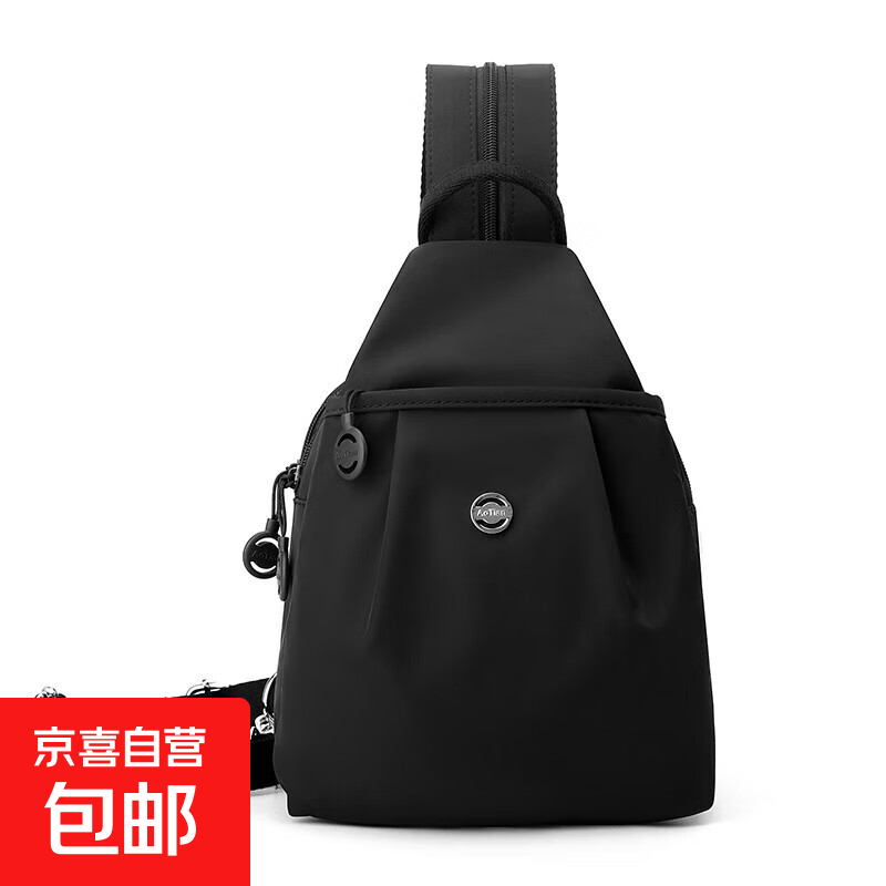 妍雨2025新款简约百搭防盗女士胸前包时尚牛津布休闲小背包迷你双 武士黑