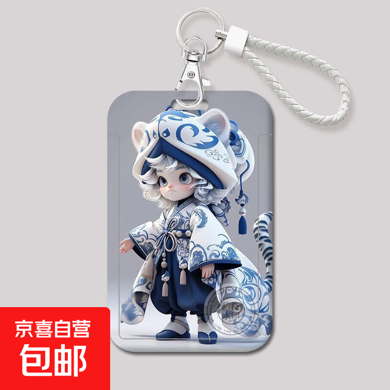 十二生肖青花瓷卡套校园学生饭卡公交门禁工作身份证件厂牌可定制 3D34-3虎卡套+白绳扣