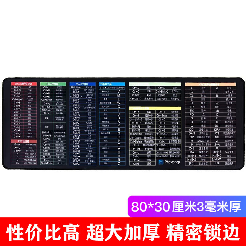 灵蛇(LINGSHE)鼠标垫800*300*3超大加厚游戏鼠标垫 学生办公电脑桌垫 精密锁边 P82 快捷键 礼盒装