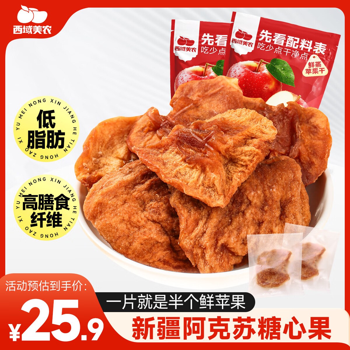 西域美农鲜蒸苹果干128g*2 低脂高纤维0添加剂 新疆阿克苏冰糖心果