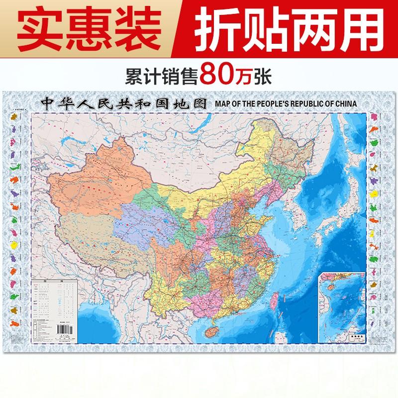 升级版袋装 2025中国地图 尺寸0.87米*0.58米 学生教室家用商务办公室地图