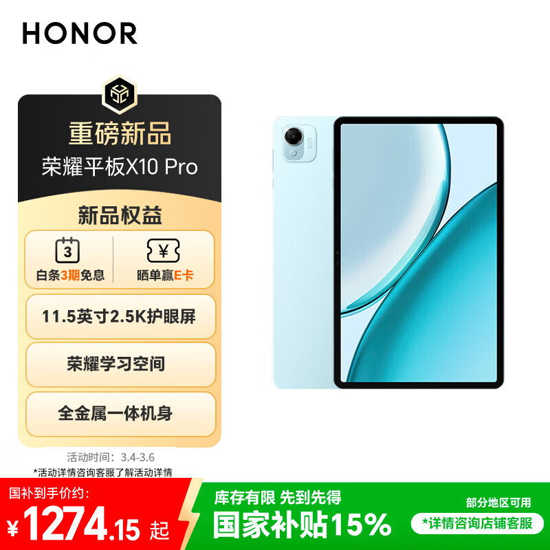 荣耀平板X10 Pro【国家补贴】11.5英寸2.5K护眼屏 荣耀学习空间 全金属一体机身 8GB+128GB 晴空蓝