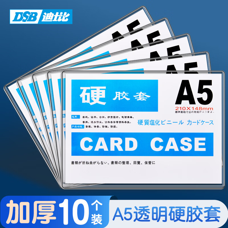 DSB(迪士比)A5透明硬胶套透明文件套展示框pvc卡套硬塑料套纸保护套材料展示袋卡片袋卡k士 10个装