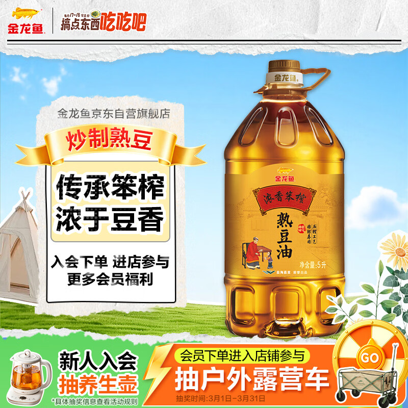 金龙鱼 食用油 非转基因 压榨 东北风味 浓香笨榨熟豆油 5L