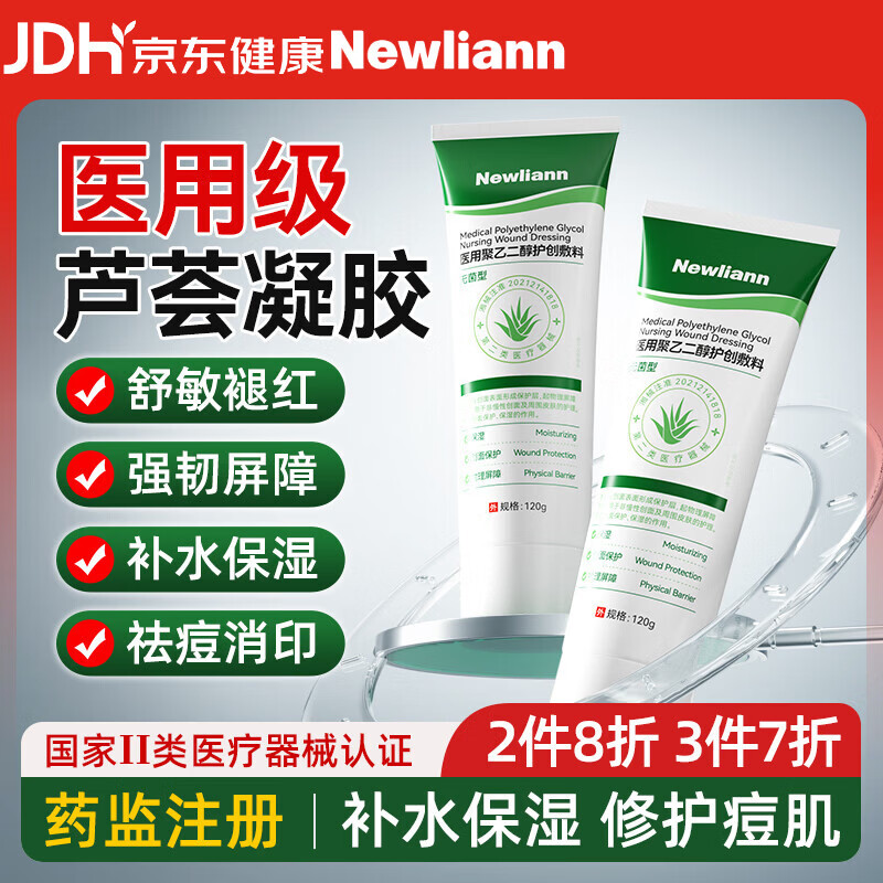 Newliann医用级芦荟胶祛痘痘印淡化疤痕修复皮肤消炎抑菌天然保湿补水凝胶