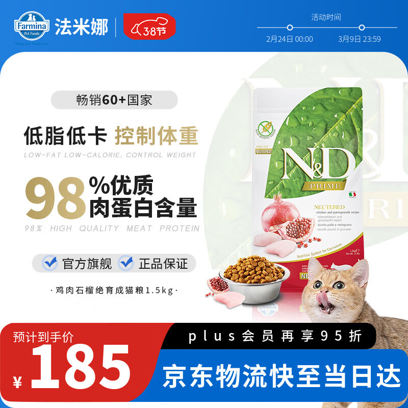 法米娜(Farmina)低脂低卡控制体重石榴鸡肉绝育成猫粮1.5kg进口猫粮