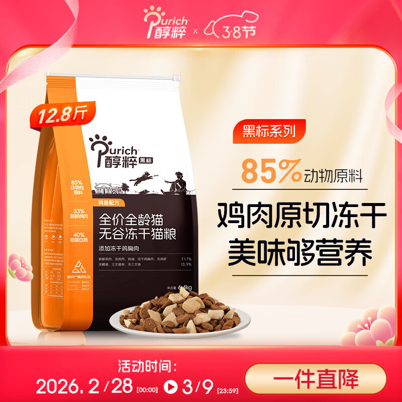 醇粹黑标猫粮 全价无谷冻干猫粮纯粹成猫幼猫国产猫粮12.8斤
