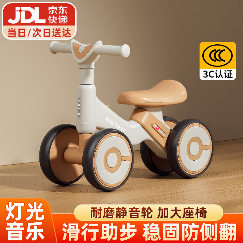贝趣儿童平衡车1-3岁宝宝滑行车玩具幼儿滑步车婴儿四轮无脚踏溜溜车 青咖 【灯光音乐+缓震静音轮】 一岁防侧翻滑滑车周岁生日礼物