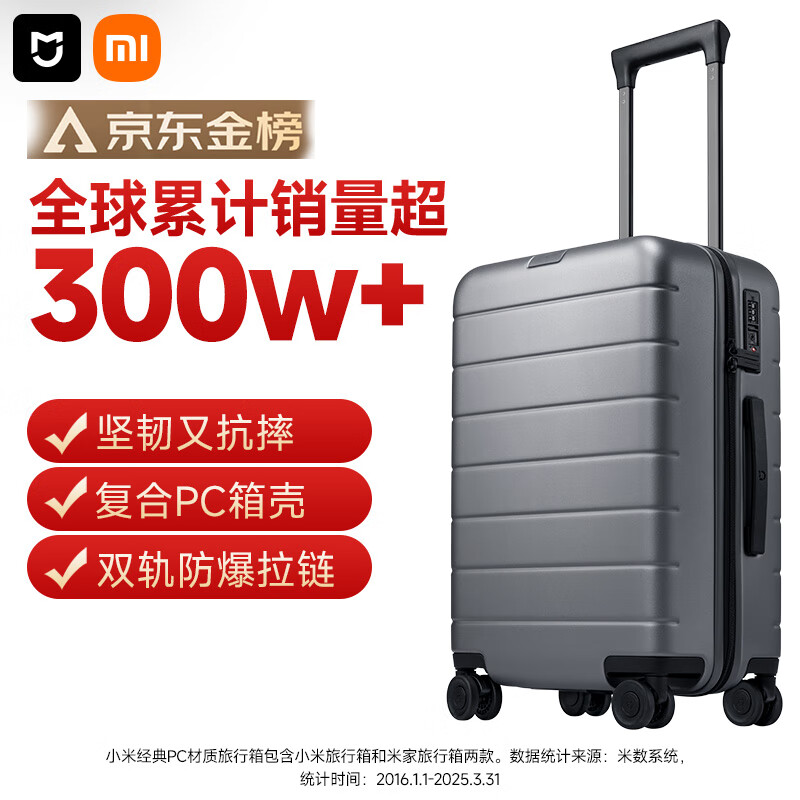 米家小米行李箱20英寸拉杆箱可登机箱PC旅行箱男女小型密码皮箱子灰色
