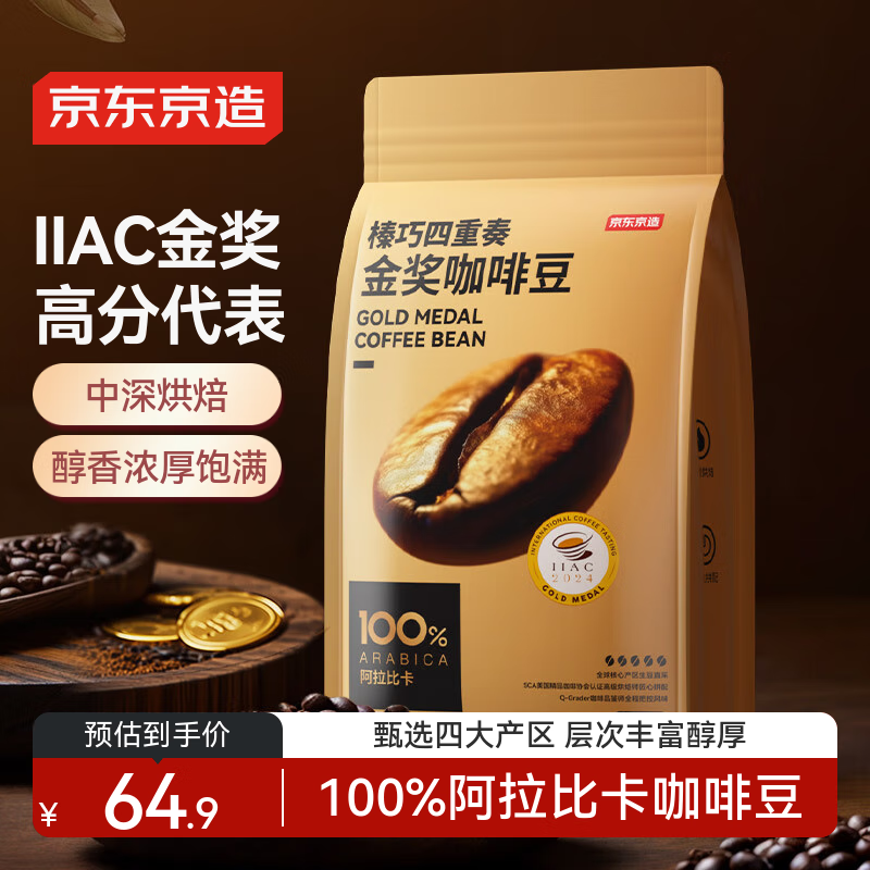 京东京造 意式咖啡豆500g 中深烘焙阿拉比卡咖啡豆浓郁低酸美式手冲金奖豆
