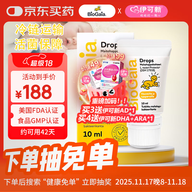 拜奥(BioGaia)婴幼儿益生菌滴剂10ml罗伊氏乳杆菌0-3岁可用调理肠胃