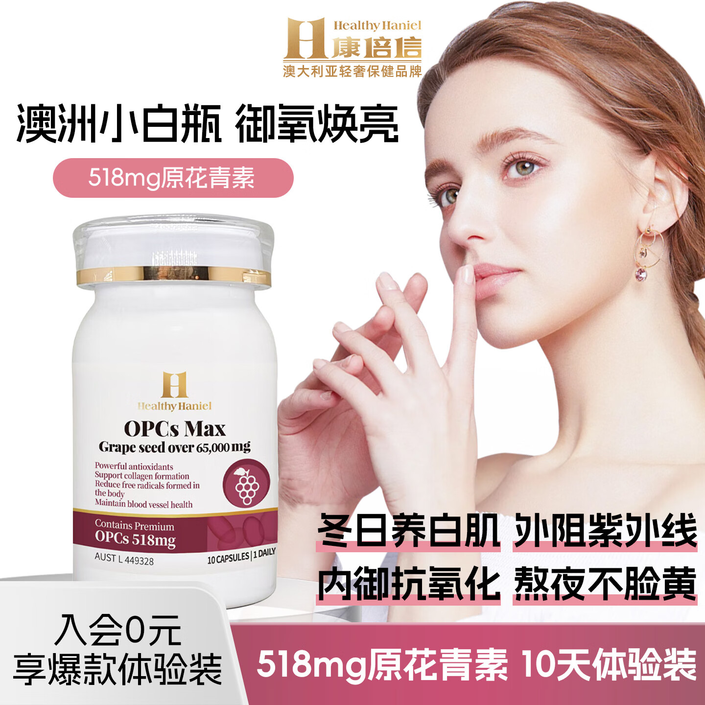 Healthy Haniel葡萄籽原花青素抗氧化淡斑内调去黄褐斑美白提亮祛斑改善暗沉肤色