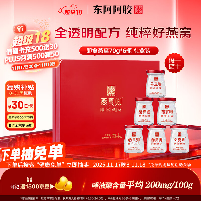 东阿阿胶 即食燕窝70g*6瓶礼盒装 送孕妇长辈滋补营养品送亲友礼物
