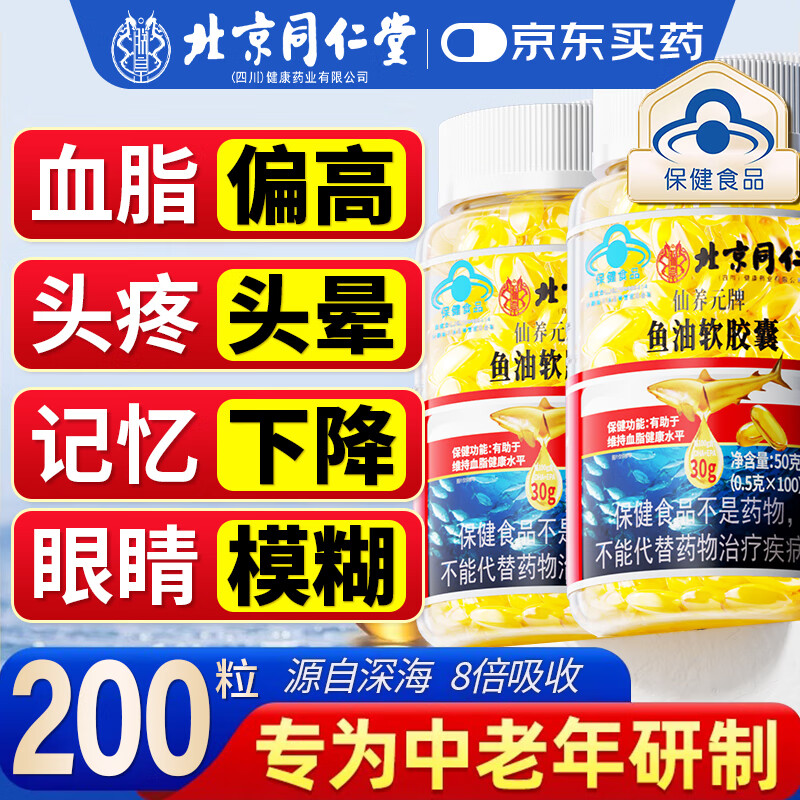 朕皇北京同仁堂 深海鱼油软胶囊超高纯度 鱼肝油大豆卵磷脂中老年人