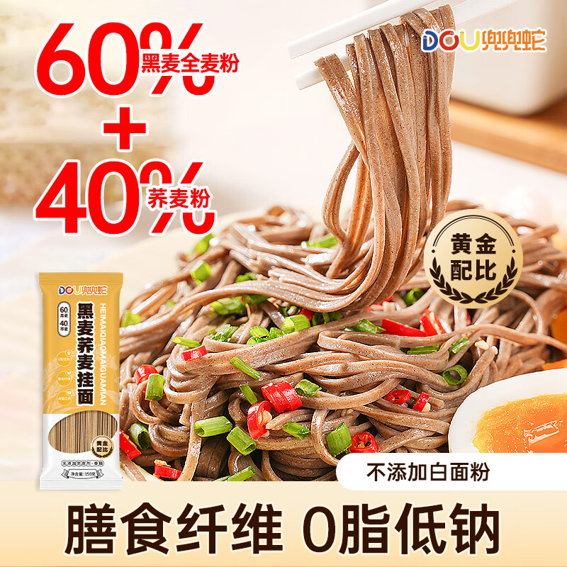 兜兜蛇0脂肪黑全麦荞麦面条150g 低脂面代餐方便速食主食粗粮杂粮挂面