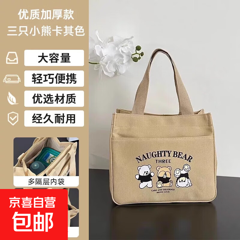 帆布手提包小巧百搭上班族便当包新款学生大容量饭盒袋简约手提袋 H1001卡其色/