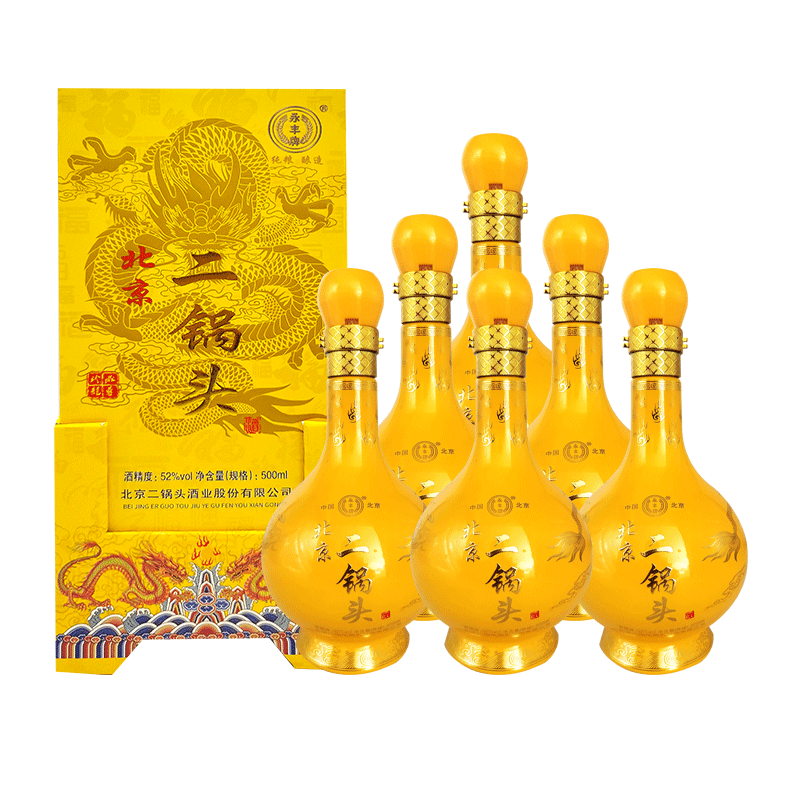 永丰牌小黄龙珍藏 52度 500ml*6瓶 北京二锅头 清香型金龙白酒整箱装