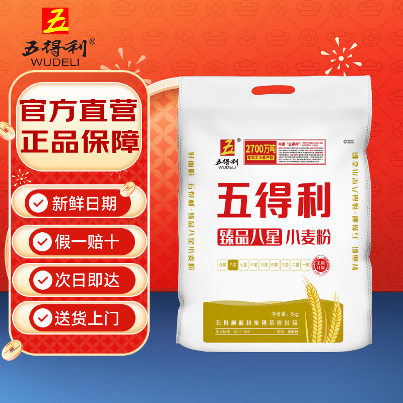 五得利面粉 臻品八星小麦粉10斤 家庭 包子饺子馒头面条通用粉