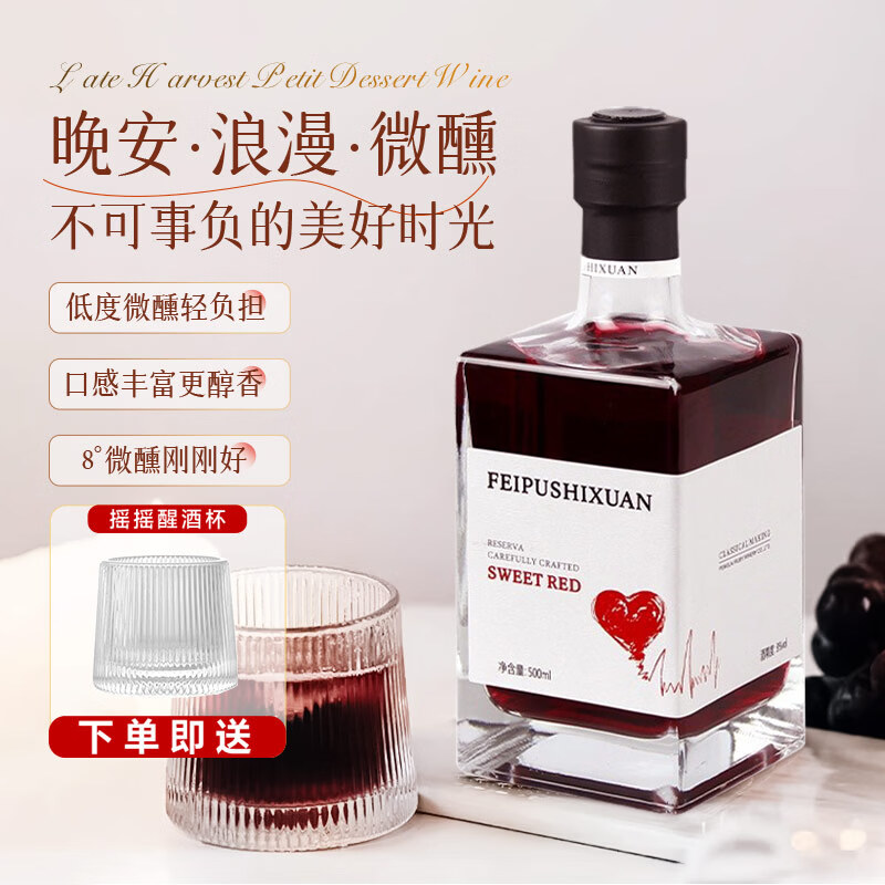 韦顿庄园 VDRN MANOR晚收冰白甜红葡萄酒甜型礼盒微醺甜酒果酒500ml婚宴礼物送红酒杯