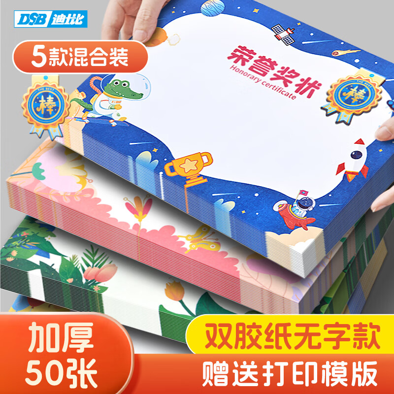 DSB(迪士比)A4奖状纸获奖证书中小学生表扬表彰教师通用荣誉证书加厚120g双胶纸卡通款50张/包50916