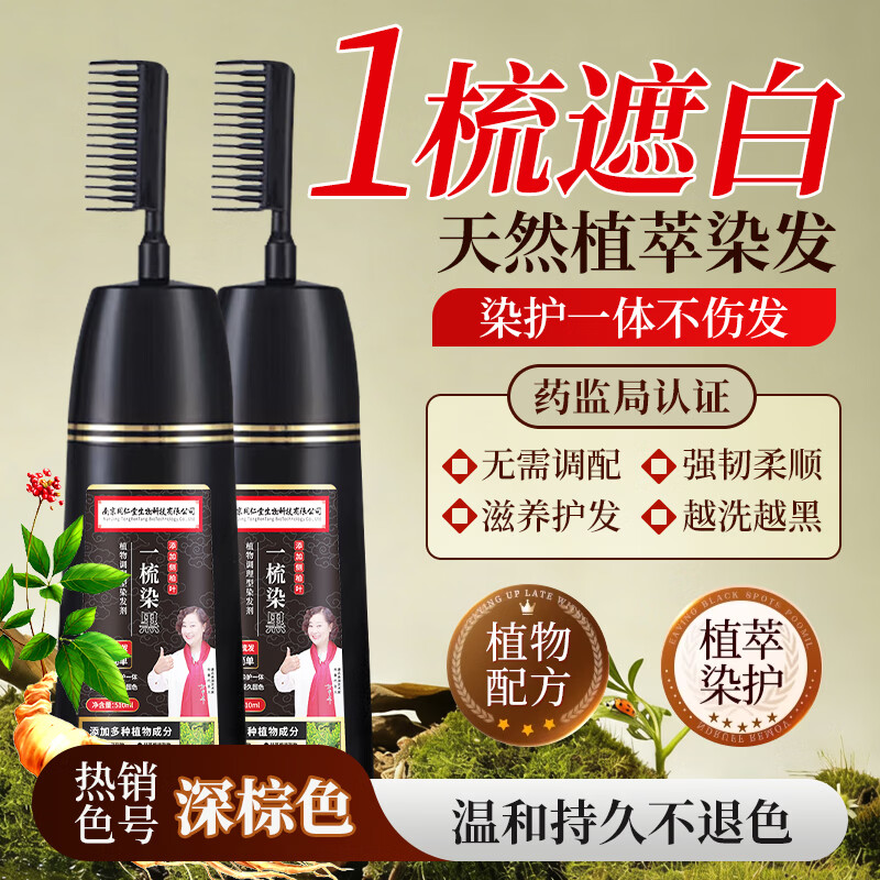 同仁堂染发膏剂纯天然植物男女盖白发专用染发膏植物染发剂深棕色510ml