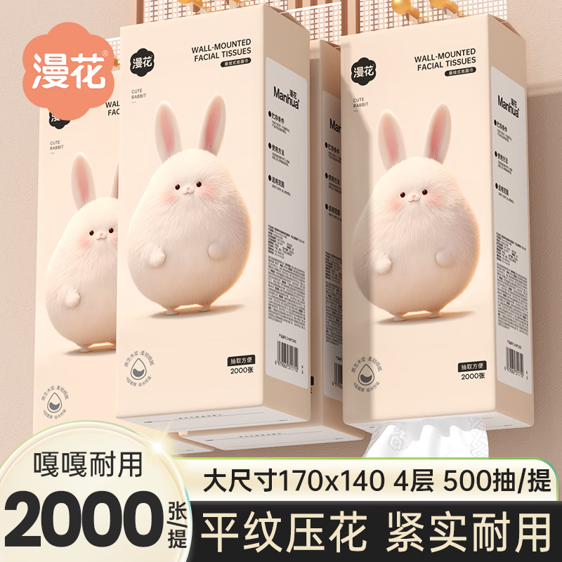 漫花平纹挂抽悬挂式抽纸4层500抽4提整箱批发餐巾面巾纸擦手卫生纸巾