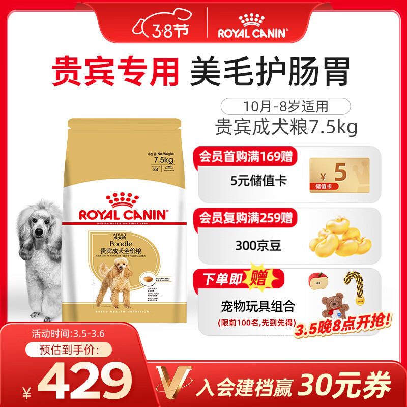 皇家狗粮 贵宾成犬狗粮 犬粮 小宠物型犬 PD30 全价犬粮10月-8岁7.5KG
