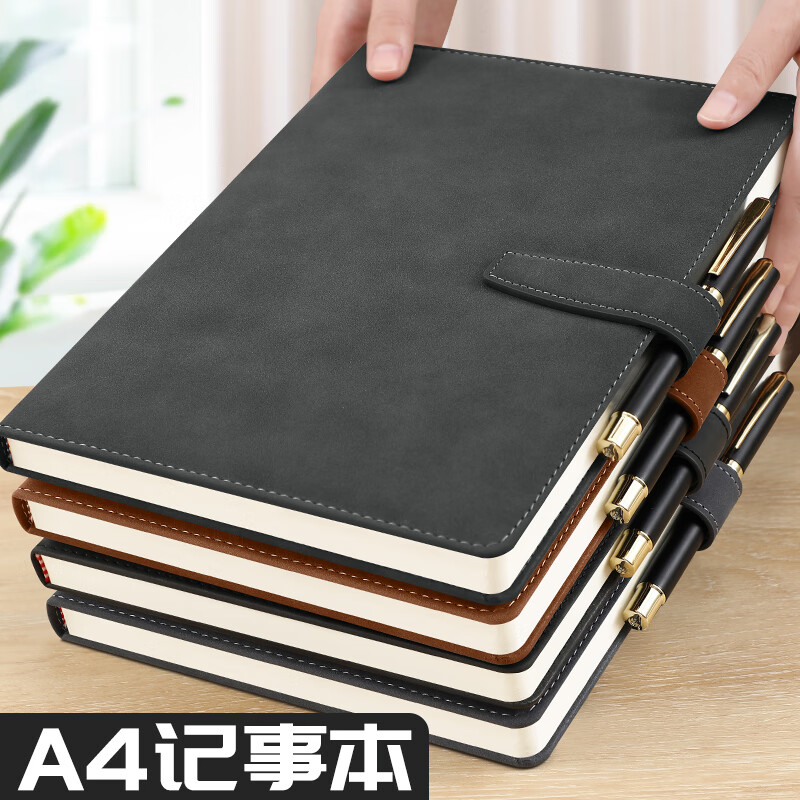 法拉蒙笔记本本子A4加厚记事本商务羊巴皮面复古记事本工作日记本会议记录本办公文具可定制 黑色-搭扣款